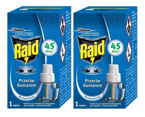 2x RAID Płyn przeciwko komarom 45 nocy Bezzapachowy Zapas 27 ml