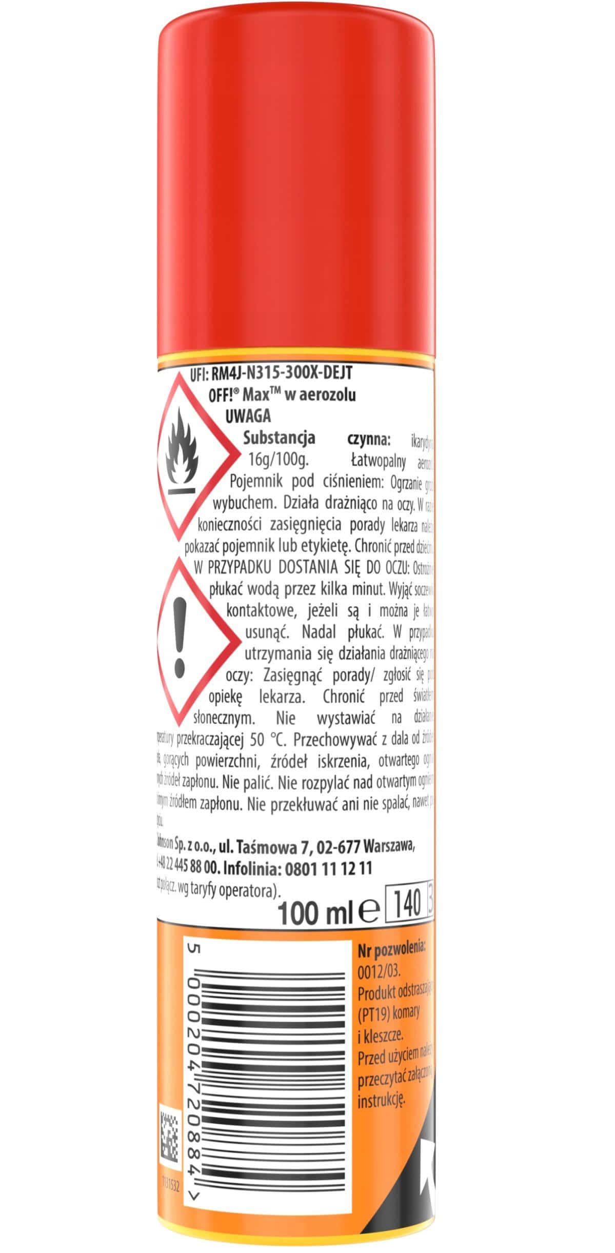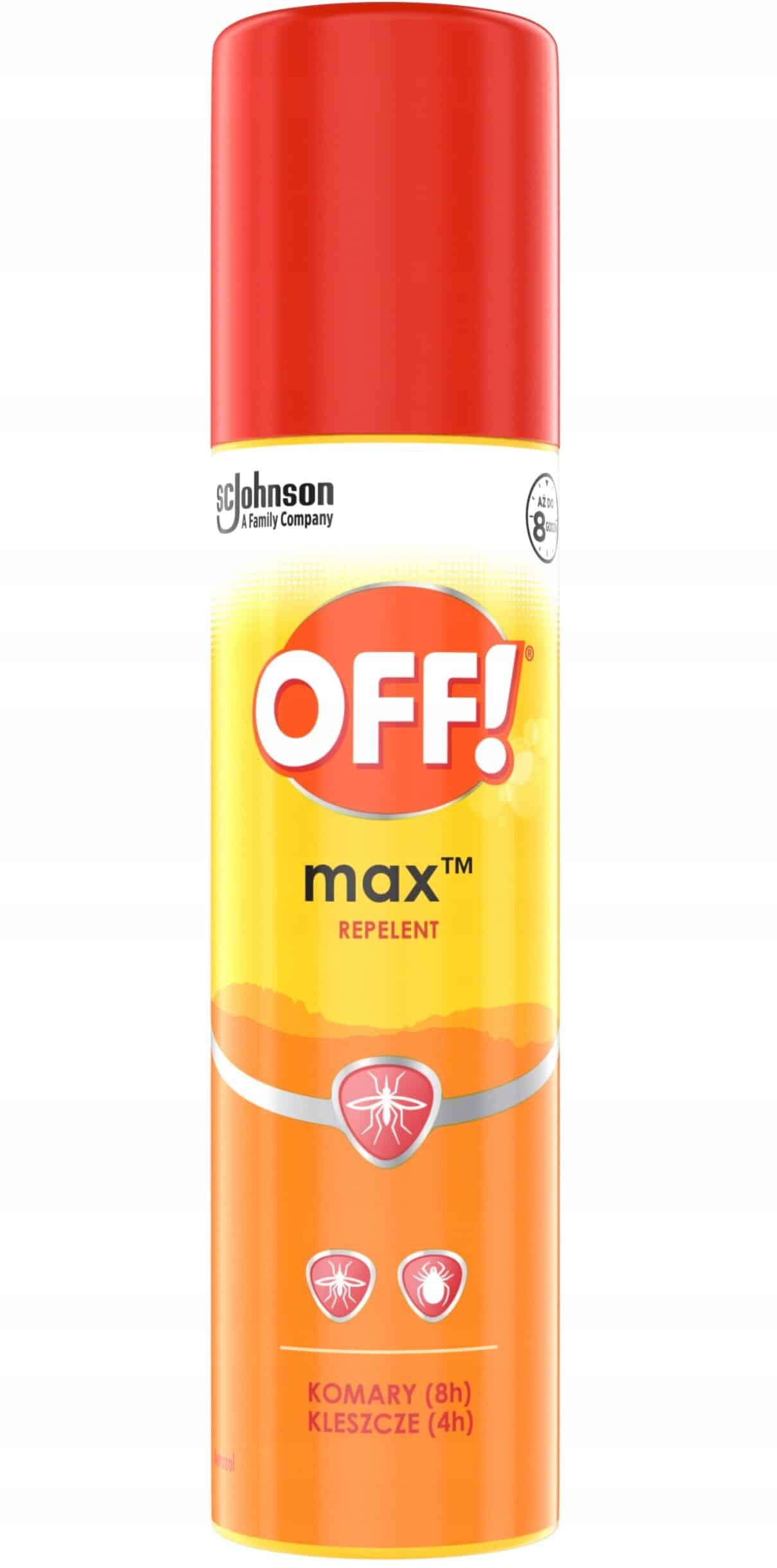 Max Repelent w aerozolu marki OFF! to środek, który skutecznie chroni przed ukąszeniami komarów oraz innych owadów latających nawet do 8 godzin. Skutecznie zabezpiecza również przed kleszczami nawet przez 4 godziny. Dzięki wygodnej formie aerozolu prosto i wygodnie zaaplikujesz produkt na ciało oraz ubranie. Aerozol nie pozostawia tłustych plam. Polecany jest dla osób aktywnych, które długo przebywają na powietrzu.