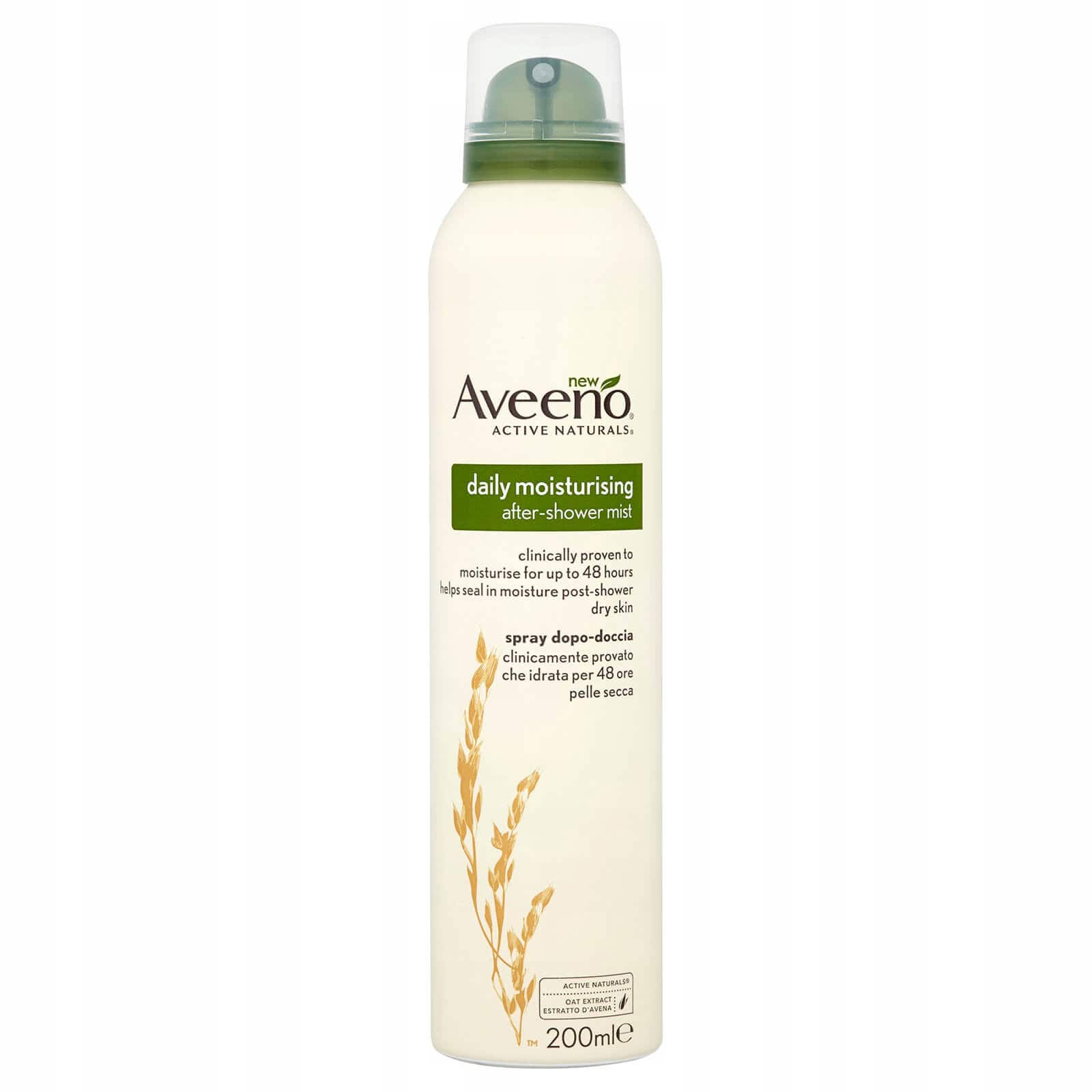 - Aveeno Daily nawilżająca mgiełka po prysznicu to kolejna z linii produktów, które wykorzystują sprawdzone właściwości nawilżające ekstraktu z płatków owsianych, aby przynieść ulgę osobom cierpiącym na suchość skóry.