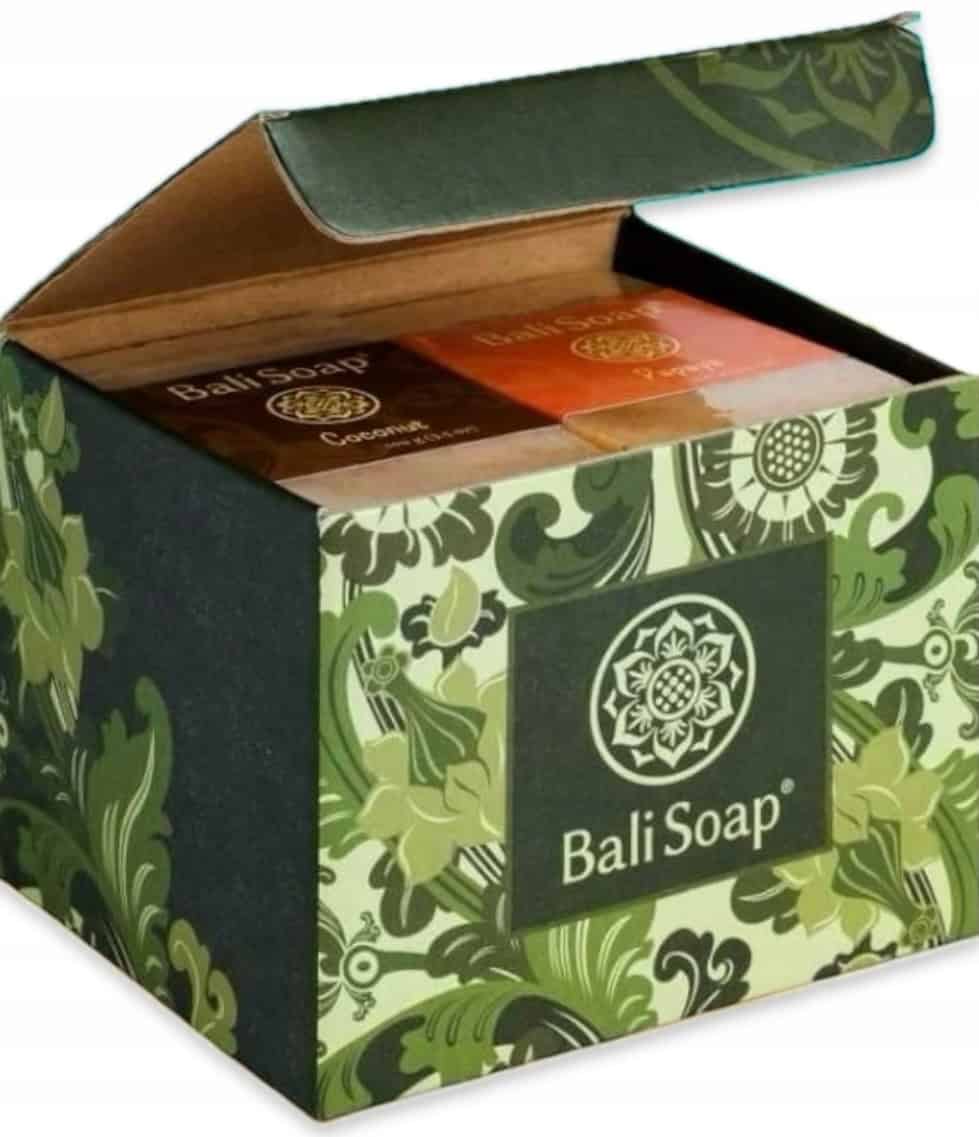 Naturalne mydło z Bali. Przetwarzane na zimno z roślinami i strukturyzowane z roślinami z archipelagu indonezyjskiego. Bali Soap naturalne kostki glicerynowe nawilżają i nawilżają skórę ultra-odżywczą pianą, spłukują do czysta bez pozostałości