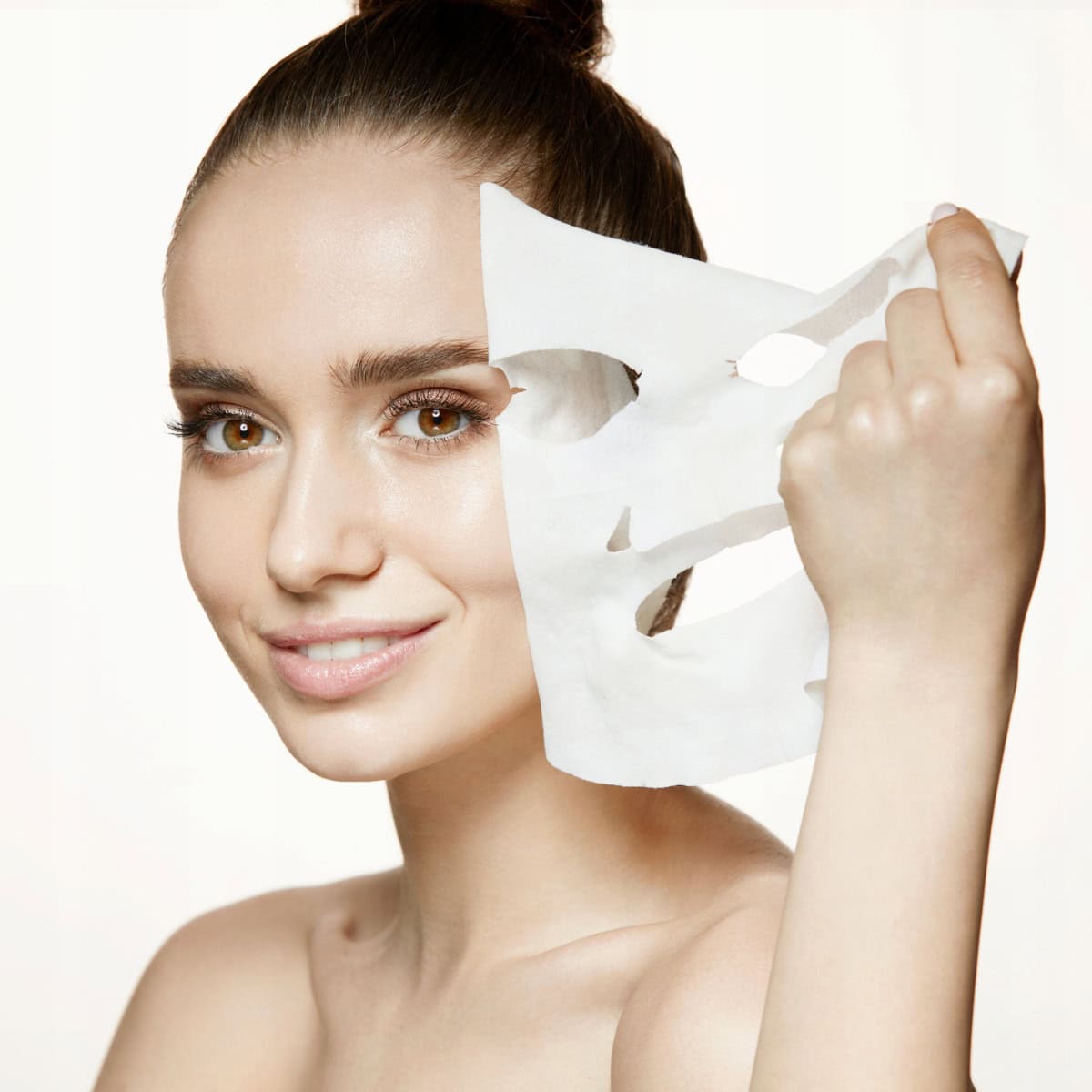 Dopasować do konturów twarzy wygładzając i lekko dociskając do skóry.