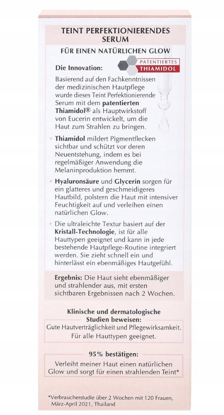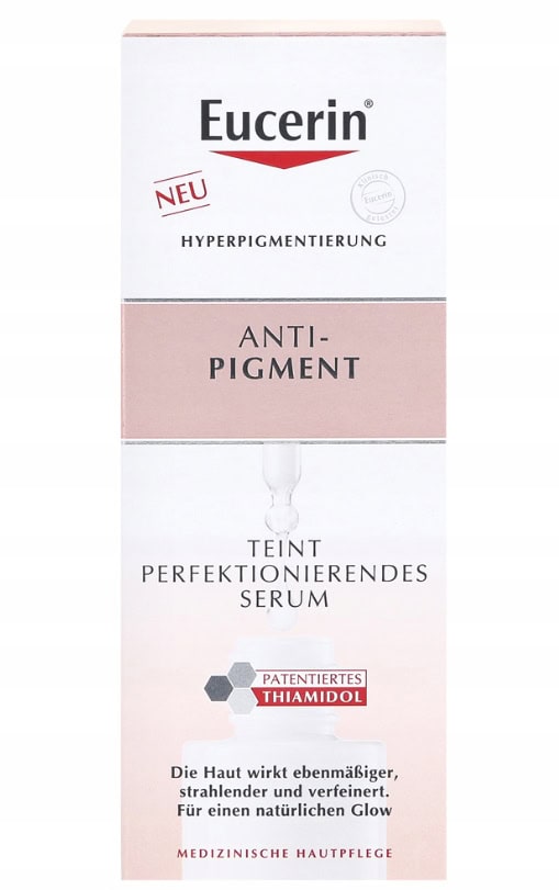 Rozjaśniające serum korygujące Eucerin AntiPigment sprawi, że już po 2 tygodniach Twoja skóra będzie bardziej rozjaśniona. Dzięki zawartości tiamidolu redukuje przebarwienia bezpośrednio w miejscu ich powstawania. Skóra pozostaje ujednolicona kolorystycznie, gładsza w dotyku oraz bardziej miękka.