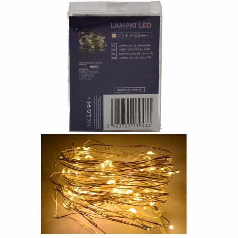 Lampki LED USB na druciku – Ciepły Biały 100 szt.