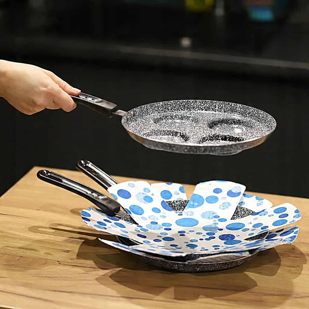 NouVelle przekładki pod patelnie to innowacyjne rozwiązanie, które zapewnia ochronę delikatnych powłok Twoich garnków i patelni. Wykonane z wysokiej jakości filcu syntetycznego, te przekładki są nie tylko funkcjonalne, ale i stylowe, dostępne w eleganckim niebiesko-białym kolorze.