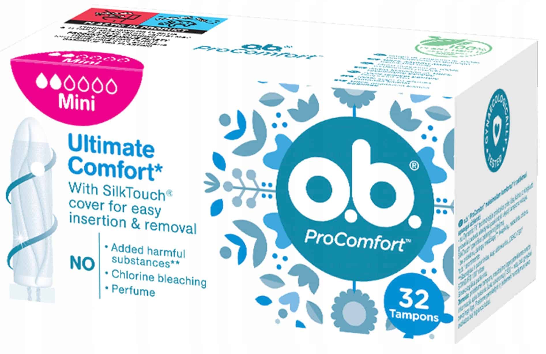 Nowe o.b. procomfort dla wyjątkowego komfortu (wśród produktów o.b.) i niezawodnej ochrony. Dzięki technologii dynamic fit z 3d expansion dostosowuje się do twojego ciała i efektywnie wychwytuje płyn kierując go poprzez splecione rowki do wnętrza i w górę tamponu. Z otoczką silktouch dla łatwej aplikacji. Opakowanie wytworzone z surowców pochodzących z odpowiedzialnych źródeł; papier z recyklingu (min. 75%).