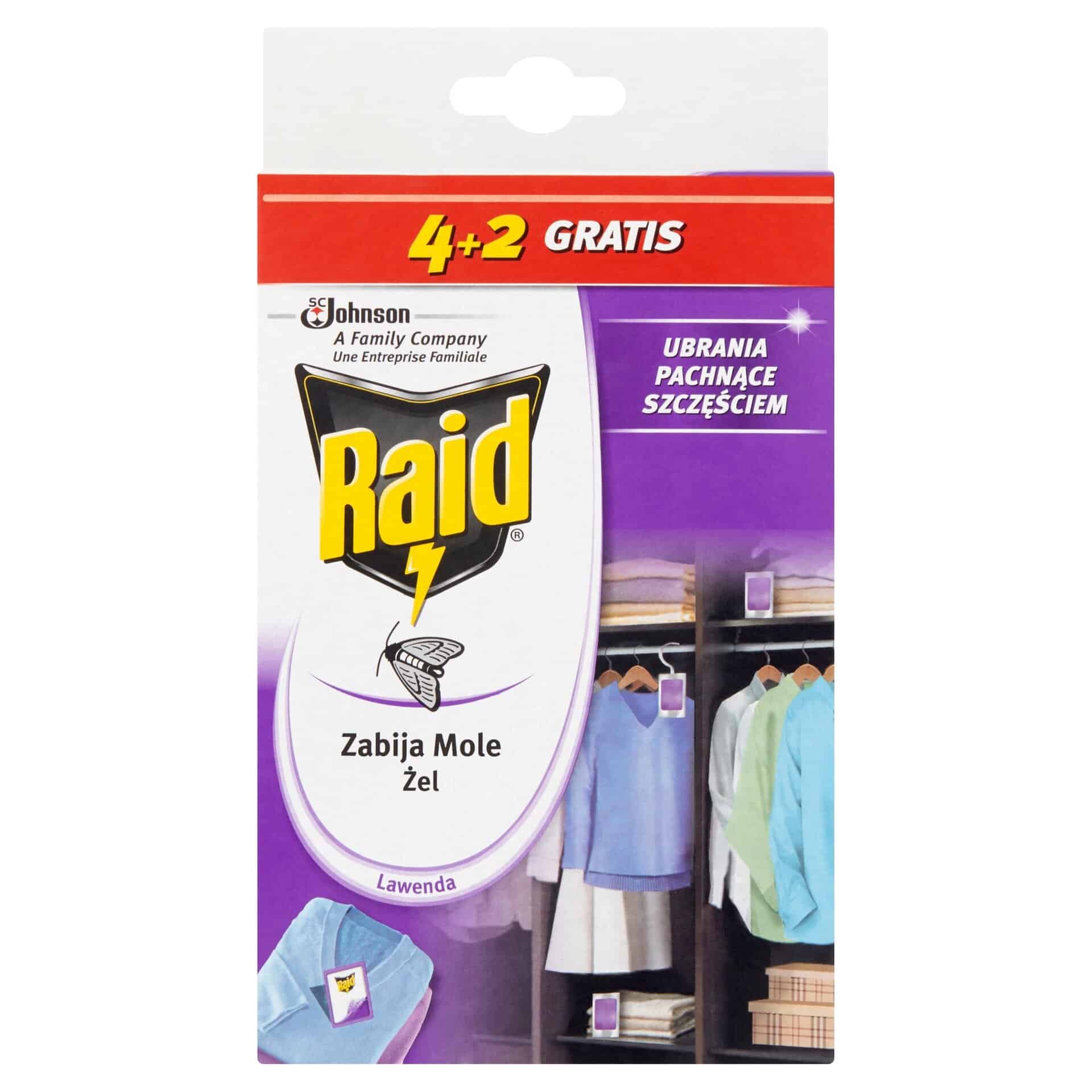 Zawieszki Raid to skuteczne i wygodne rozwiązanie, które błyskawicznie pomoże Ci uporać się z problemem moli. Umieść je w szafie i ciesz się ochroną oraz pięknym aromatem lawendy!